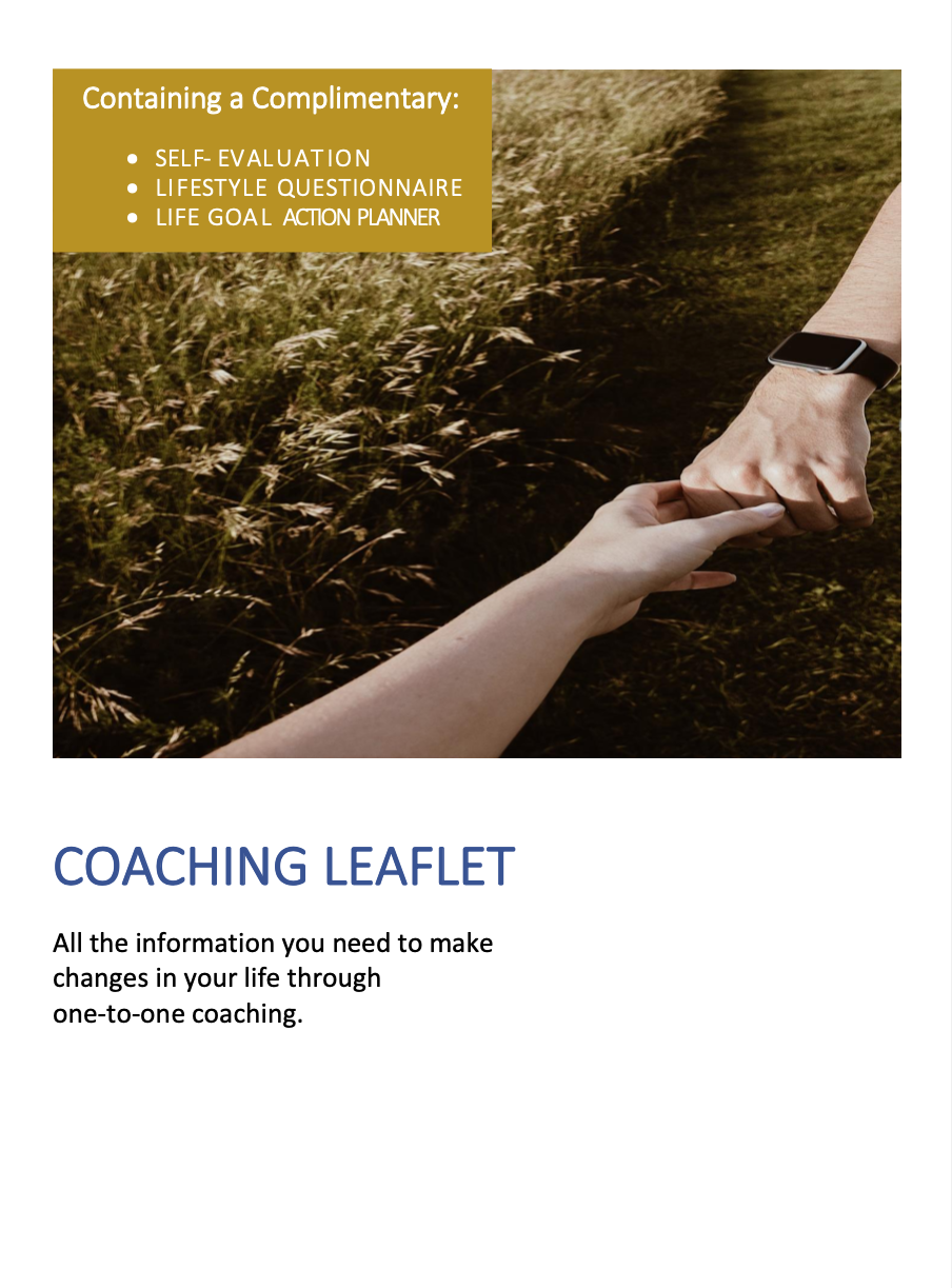 Please enjoy my Coaching Leaflet, outlining my services and offering you several free self-reflection sheets, including: